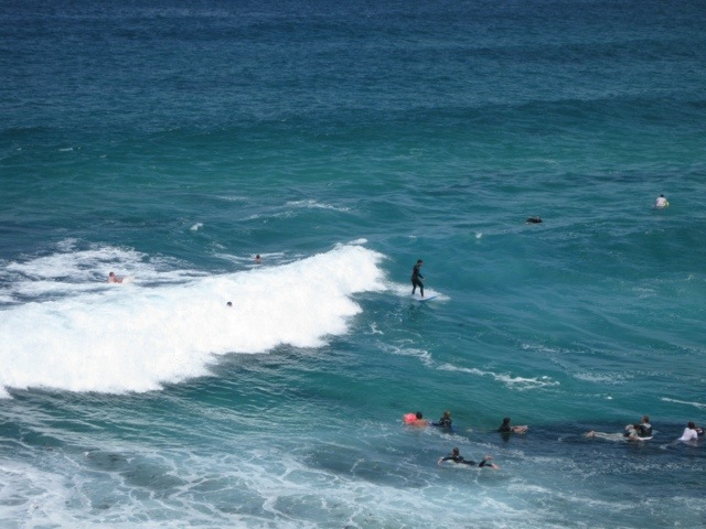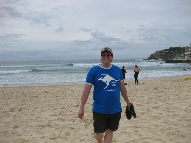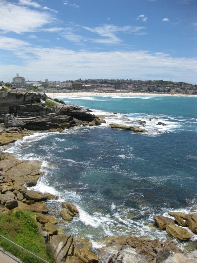 Es besteht die Chance auf Sonne, also raus aus dem Hotel und einen zweiten Versuch mit dem Strand und dem Pazifik gewagt. Der berühmteste der Sydneyer Strände sollte es ein, der Bondi Beach, Tummelplatz für Surfer und Prominente gleichermaßen und DER Strand von Sydney. Ich war deutlich optimistischer als Simone, und bin mit Badeshorts und Shirt losgezogen, sie war mit Jeans und Pulli deutlich pessimistischer, hat aber wenigstens Badeklamotten und Shorts in den Rucksack gepackt. So ging’s dann los, diesmal mit dem 378 er Bus (endlich mal die längst gekauften Tickets nutzen) bis Bondi Junction. Leider waren ab dort unsere Tickets nicht mehr gültig, so dass wir für die letzten paar Stationen nach dem Umsteigen nochmal teuer bezahlen müssten, passt zum undurchsichtigen, schlechten Verkehrssystem von Sydney. Kein Wunder dass hier alle mit dem Auto durch die Stadt gondeln und so die Stadt verstopfen.