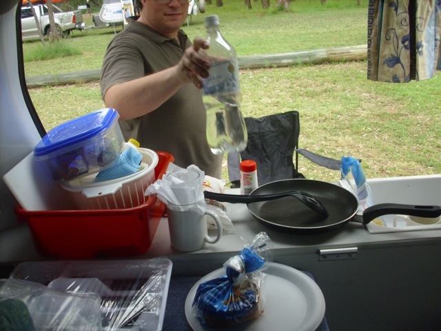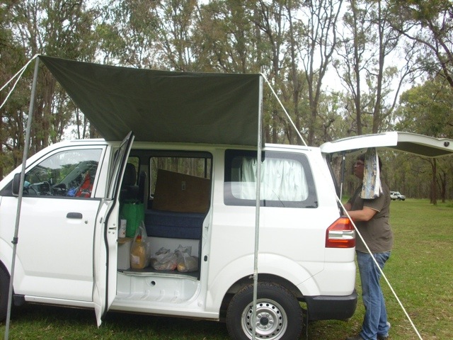 Nach dem ersten Rast-Versuch darf dann Simone übernehmen, sich mit der ungewohnten Sitzposition anfreunden und sich “links halten”. Gemütlich brausen wir durch das wechselhaft Wetter in Richtung Cessnock, und von dort dann weiter nach Broke, wo ich einen Campgroud ausgemacht habe. camp6, unser Campingreiseführer listet vor allem kostenlose oder günstige Sites auf, von denen es in Australien mehr als genug gibt. Dort angekommen darf sich unser Mini zum ersten mal (zumindest für uns) in voller Größe entfalten, und wir kochen uns schön Spaghetti zum Abendessen. Kurz danach öffnet dann der Himmel seine Schleusen und wir ziehen uns zurück, Zeit zum Bloggen…