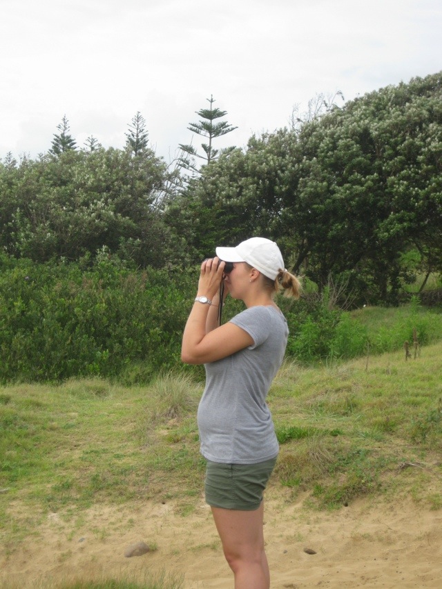 Nach einer unruhigen Nacht, aus Angst vor Rangern und anderen “Offiziellen”, die uns von unserem Plätzchen am Ozean vertreiben könnten, Wachen wir schon früh auf, sehr früh sogar. Als ich gerade dabei bin Frühstück zu machen, beobachtet Simone die ersten Surfer im Wasser. Dazwischen fällt ihr etw auf, erst glaubt sie an Haie, direkt bei den Surfern, und ich lasse das Geschirr stehen und hole mein Fernglas. Bei genauerem Hinsehen sind es keine Haie, keine Schwimmer sondern Delfine, die zu Dutzenden vor dem Strand schwimmen, und immer wieder vor uns springen. Auch wenn sie kaum auf ein Foto zu bannen sind, so weit wie sie weg sind, sonstige sie doch mit dem Fernglas zum greifen nah, und gebannt beobachten wir beinahe eine Stunde lang das Treiben vor uns im Wasser.