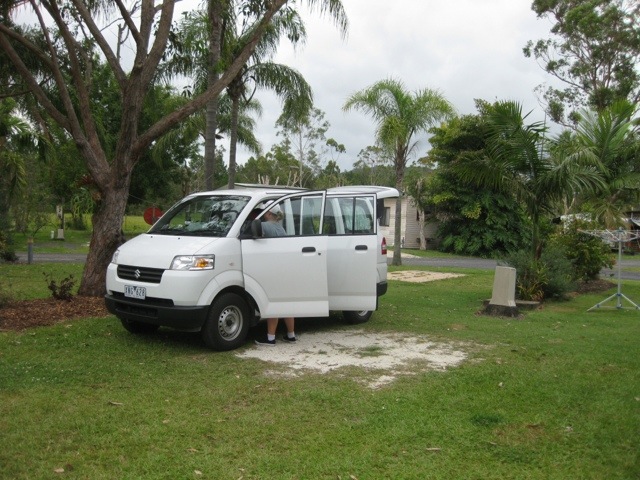 Mühsam reißen wir uns los, frühstücken und machen den Abwasch. Nach einem kurzen Strandspaziergang geht’s dann ans Aufbrechen, und nochmal kommen zwei große Delfingruppen und verabschieden sich mit Sprüngen von uns. Doch bevor wir losfahren möchte mein Schatz wissen, wo wir heute Nacht schlafen. Nach den Erfahrungen mit den letzten Campingplätzen (schweineteuer und mindestens eine Woche Aufenthalt) entscheiden wir uns, den erste Campingplatz anzurufen, und zu fragen, um nicht wieder alle abfahren zu müssen. Der erste auf der Liste, Der Sandalwood Van & Leisure Park in Wardell, einige Kilometer südlich von Ballina. Wende, die Besitzerin, ist gleich superfreundlich am Telefon und verspricht uns einen Platz frei zu halten… Für sagenhaft günstige 26 Dollar – powered, so dass unsere ganzen Geräte endlich wieder Strom bekommen. Dazu gibt es Duschen, einen Pool, BBQ, alles was das Herz begehrt, und ob wir ein, zwei oder drei Nächte bleiben können wir spontan entscheiden. Perfekt, ich buche den Platz und wir können entspannt das Tagesprogramm angehen, wissen wir doch wo wir schlafen werden.